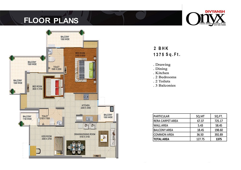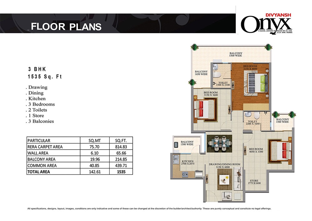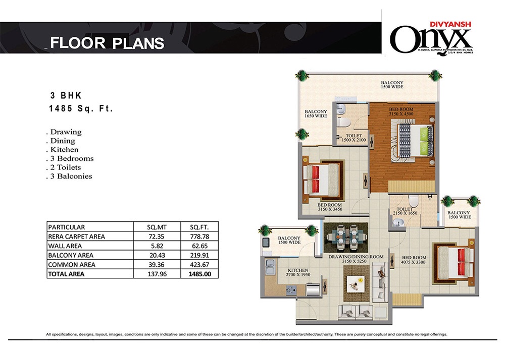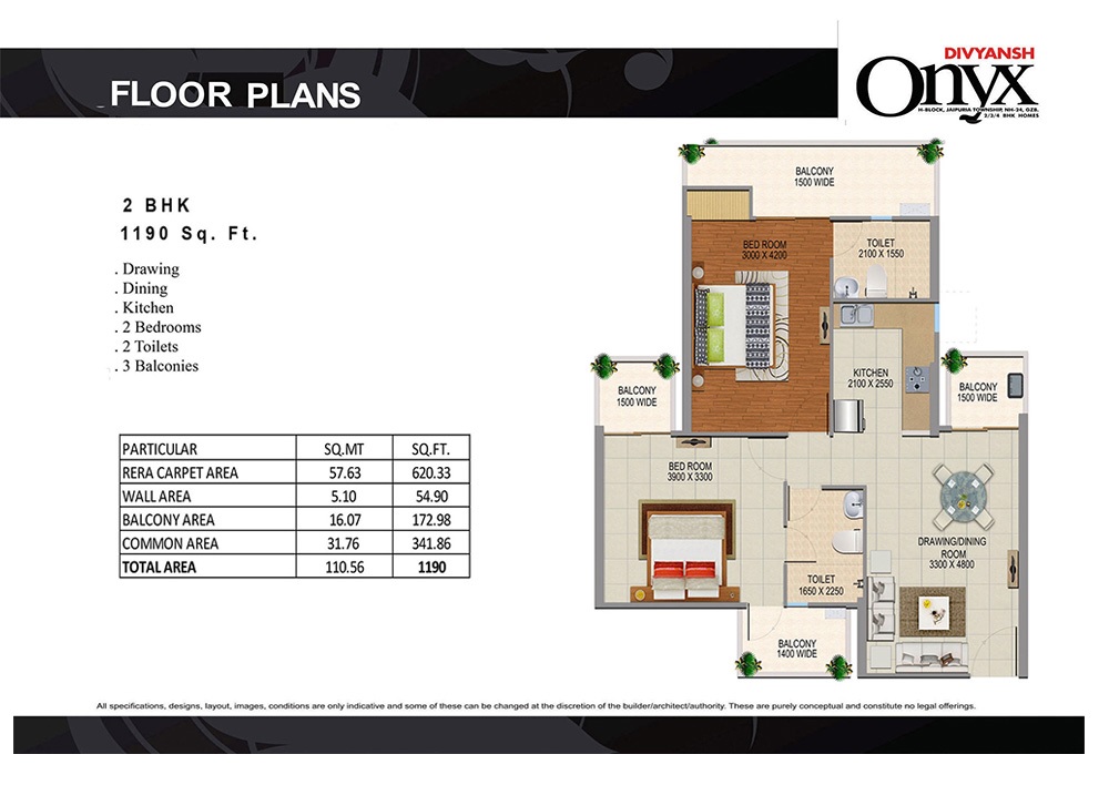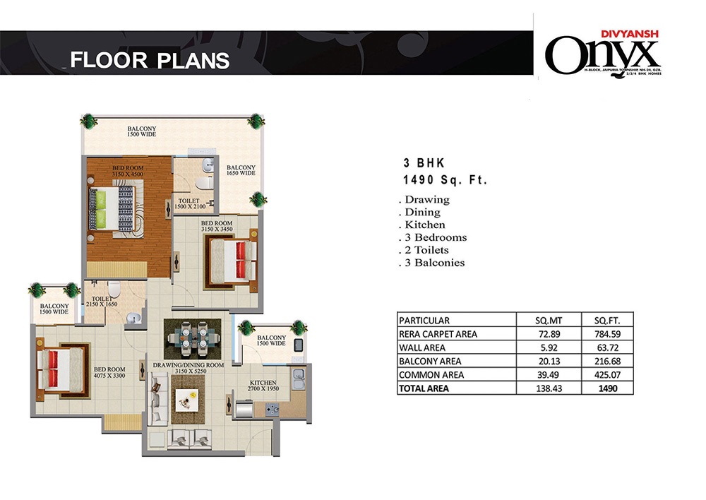 Divyansh Onyx NH24, Ghaziabad is offering stunningly designed and elegantly crafted spacious & breathable luxury 2/3/4 BHK apartments with sizes ranging from 1080 to 2330 sq ft which would be a renowned gated community only a few minutes away from Electronic City Noida Sector 62/63. Be ready to experience the serenely blissful lifestyle laced with hugely spanning central lush green landscaping and an integrated shopping arcade. You will enjoy world-class amenities such as a swimming pool with child deck, sun & steam bath, 20K sq ft clubhouse, garden, parks, big attached balconies, amphitheater, convenient shops, wider ramp to basement, spacious vehicle parking, 24/7 hi-tech surveillance, gated guard, Wi-Fi Enabled, Zero Garbage, 24/7 Water and Electricity, rapid and well-maintained lift, kids and old age amusement park, sports & games recreational center, etc.