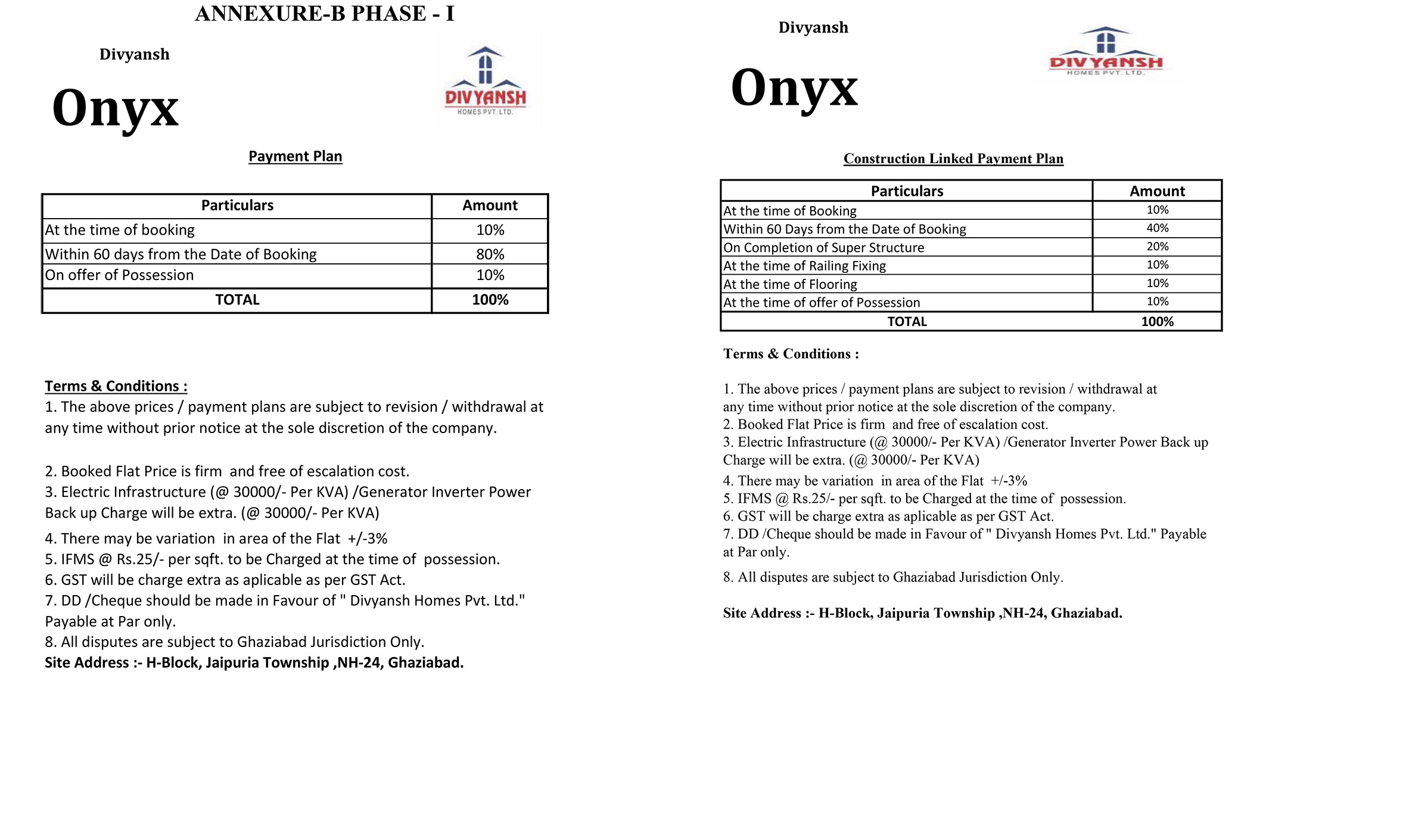 Divyansh Onyx welcomes you on the widest ever entry lane of Delhi-Meerut Expressway (16 Lane) and NH24 at Ghaziabad to its coming-soon 2/3/4BHK ultra-modern lifestyle. This would be a serene and blissful luxury lifestyle facing along beautifully master green on the West side and would be enjoying the palm of lush green nature from either side of the project site. Strategically this project is located ahead of the Crossing Republic and ABES Engineering College when you go from Delhi to this site. It is just opposite Manipal Hospital, Ghaziabad. This residential project is being designed by Space Designer and being developed by Divyansh Homes Pvt Ltd using 100% MIVAN Technology and world-class construction quality. The residential premises would consist of 20 thousand square feet of the state-of-art clubhouse on the circumference of encircled and well contend residential units inside. Being close to every public and private convenience Onyx